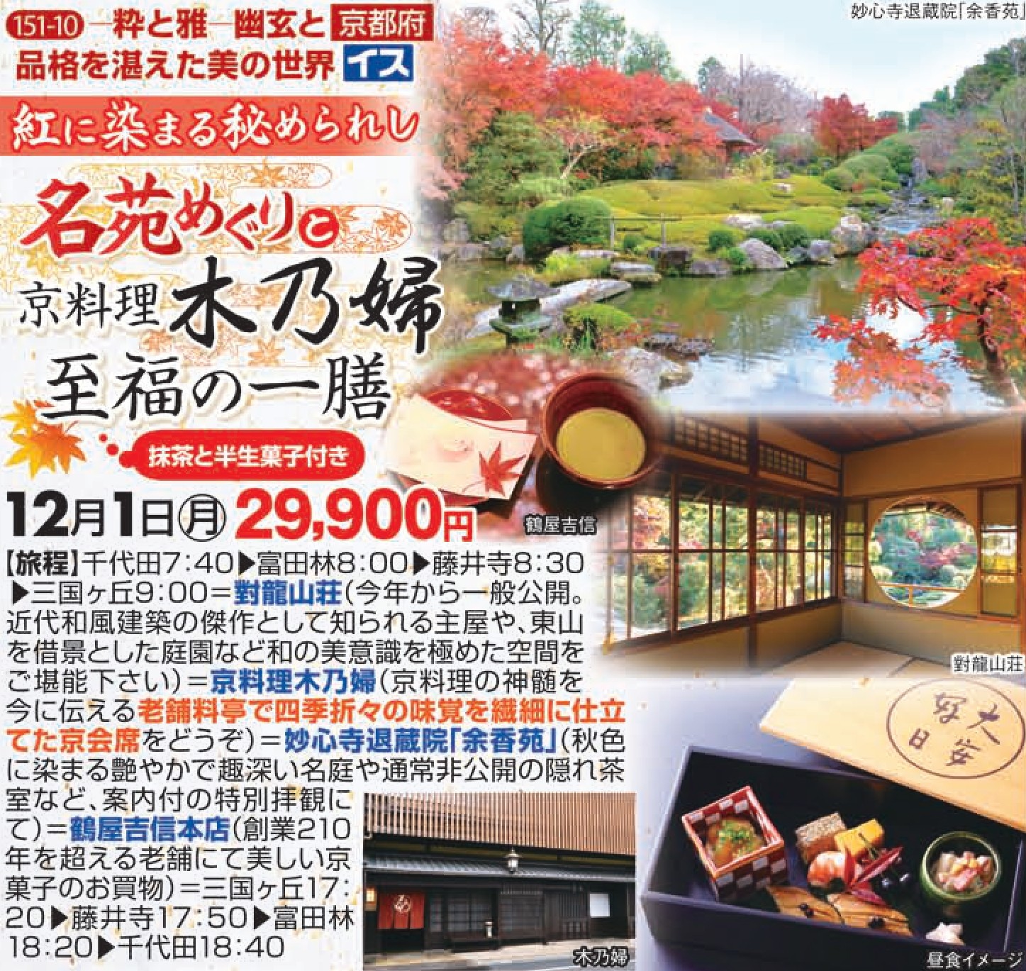名苑めぐりと京料理木乃婦 至福の一膳 |